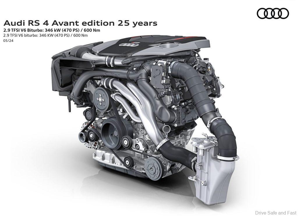 Under the hood, the RS4 Avant edition 25 years packs a potent punch with its 2.9-liter V6 biturbo engine, delivering a staggering 470 PS – a 20 PS increase over the standard RS4 Avant. This power translates into breathtaking performance, propelling the vehicle from 0 to 100km/h in a blistering 3.7 seconds, making it one of the quickest wagons on the market.