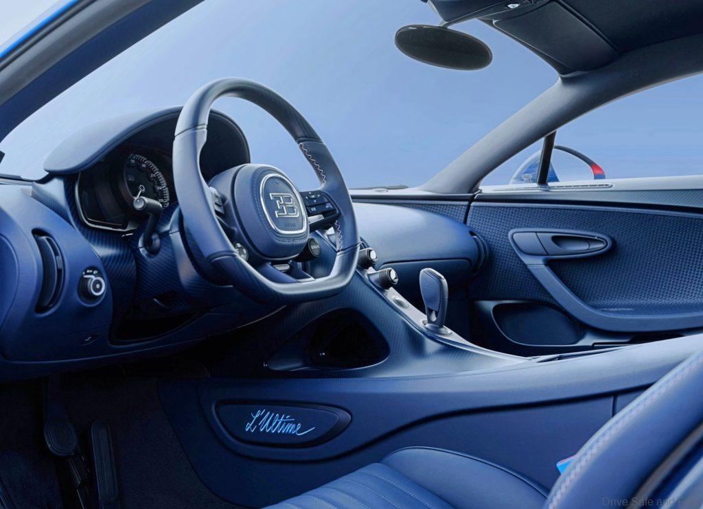 Inside, the L’Ultime’s cabin exudes the highest levels of Bugatti craftsmanship. ‘Deep Blue’ hand-woven leather and ‘Blue Carbon Matt’ finishes fuse modern technology with traditional artistry. Touches of iconic ‘French Racing Blue’ connect the exterior aesthetic.