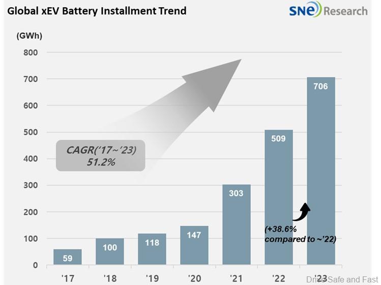 It has just been reported by DW Business news channel that in 2023, the total global battery consumption for electric vehicles was only 705.5 GWh, which is up 38.6 percent compared to 2022.