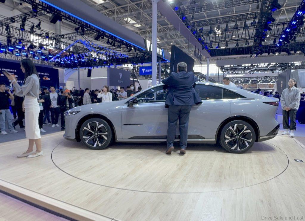 Inside this Mazda EZ-6 you will see a 14.6-inch floating center screen, an LCD instrument panel along with flat bottomed steering wheel, wireless mobile phone charging pad, two cup holders, a Sony sound system and a zero-gravity seat for the front passenger. Functions seems almost exclusively controlled through the screen or voice command. Powering the cockpit is a Qualcomm Snapdragon 8155 chip.