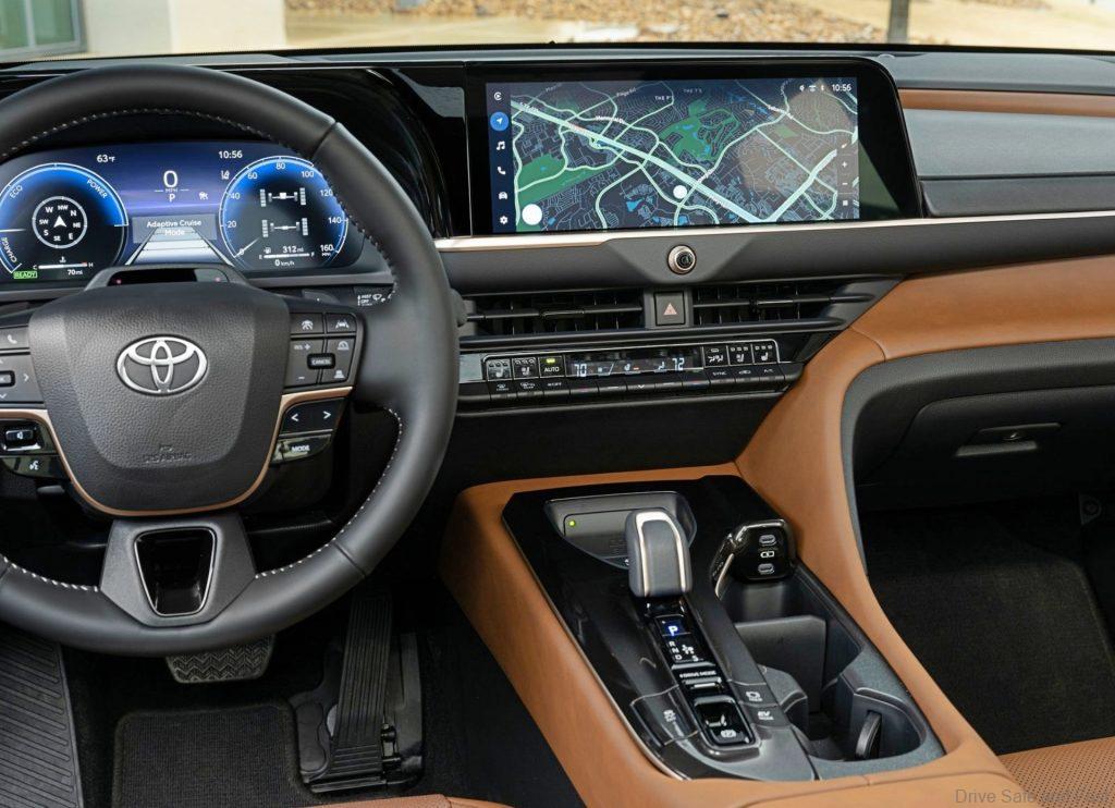 The spacious interior features premium leather seating, unique color combinations, bronze metallic accents, and loads of tech like a digital gauge cluster and Toyota’s latest Audio Multimedia system.