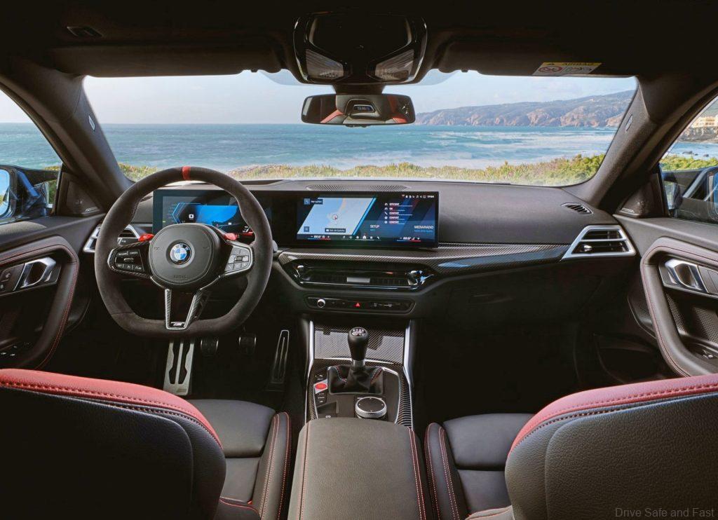 New steering wheel options include an M leather wheel with a flattened bottom spoke design, red center marker, and contrast stitching in BMW M colors.