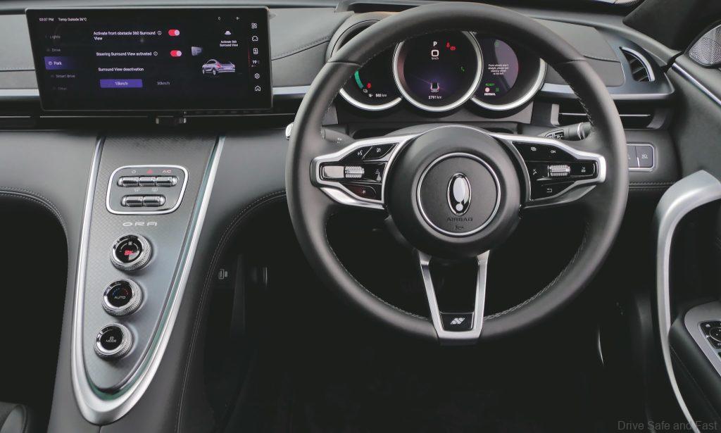 Ora has cleverly framed the digital instrument cluster to make it look like it consists of three circular displays rather than one generic rectangular one. The infotainment system doesn’t have any party tricks but is simple enough to operate with some physical buttons below it.