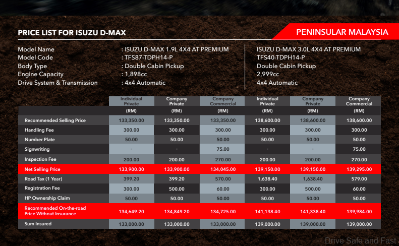 So, really not to worry as Isuzu also has a very good diesel sipping version of the D-max which is the 1.9L 4×4 Premium variant which is priced at RM134,649.20. Maybe this variant is better suited for your needs.