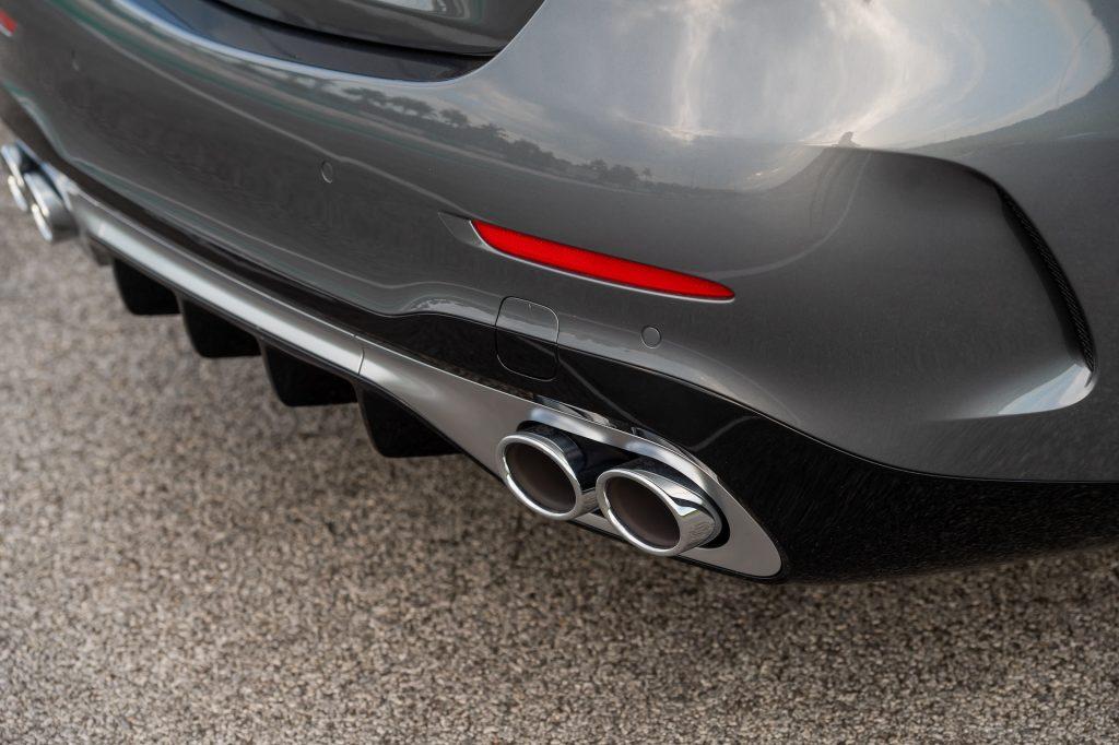 The AMG exhaust system offers adjustable sound levels based on the selected drive program. Exterior AMG-specific details include a distinctive radiator grille, front apron with flics, side sill panels, diffuser-look rear apron, and twin-tailpipe trim elements.