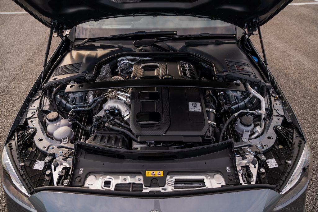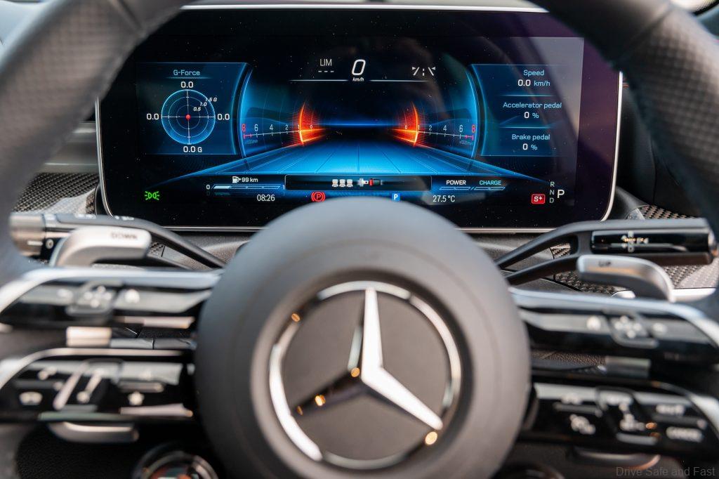 The car’s sporty driving experience is enhanced by rear axle steering, AMG Performance 4MATIC all-wheel drive with rear-biased torque distribution, AMG SPEEDSHIFT MCT 9G transmission with wet start-off clutch, and DYNAMIC BODY CONTROL suspension with Adaptive Damping System.