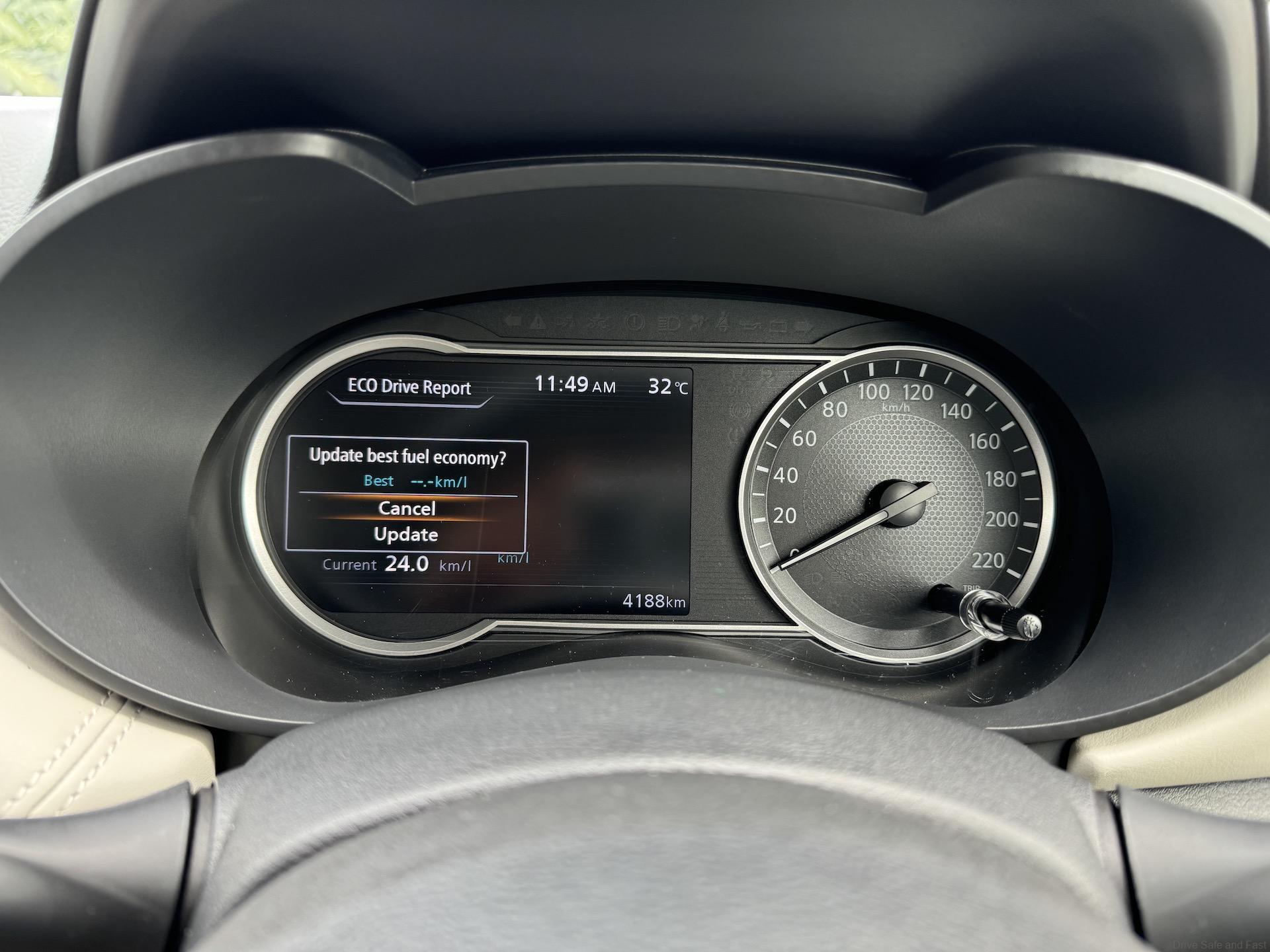 Yes, it can be done, if you want to save money. We did a relaxed drive with the Nissan Almera 1.0L Turbo to Ipoh in about 2 hours 35 minutes and got an average fuel efficiency of about 24.0km/L (with the air-conditioning switched on driving an average speed of 85 to 95 km/h).