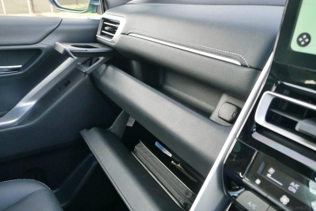 The front occupants have access to the panoramic sunroof and its sunshade controls, there are deployable cupholders in front of the side air vents, a 12V socket up on the dash is available on top of the decent sized glovebox and centre storage box comes with a clip-type wireless charger.