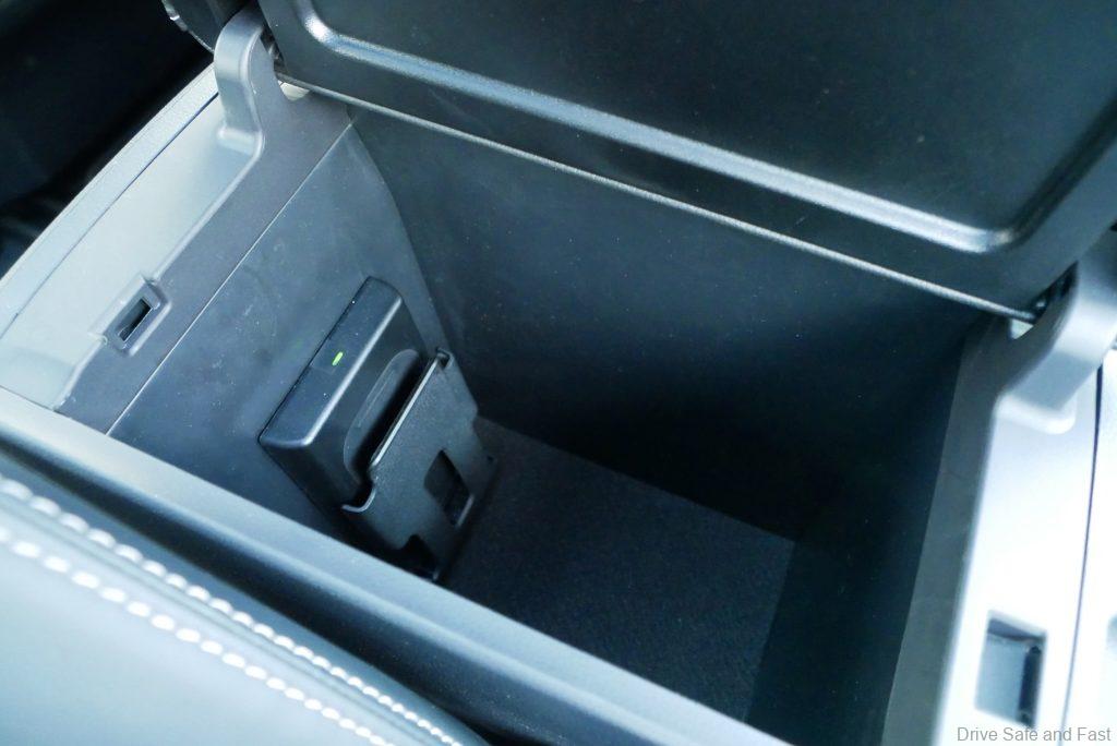 The gear shifter is chunky with a tiptronic function if you feel the need to shift this hybrid MPV manually through virtual gear ratios. An Electronic Parking Brake is found next to the shifter above a brake hold button and buttons to cycle through Drive Modes and a pure EV mode. Below all of this you’ll find one USB-C and one USB-A port – a very rare and considerate combo.