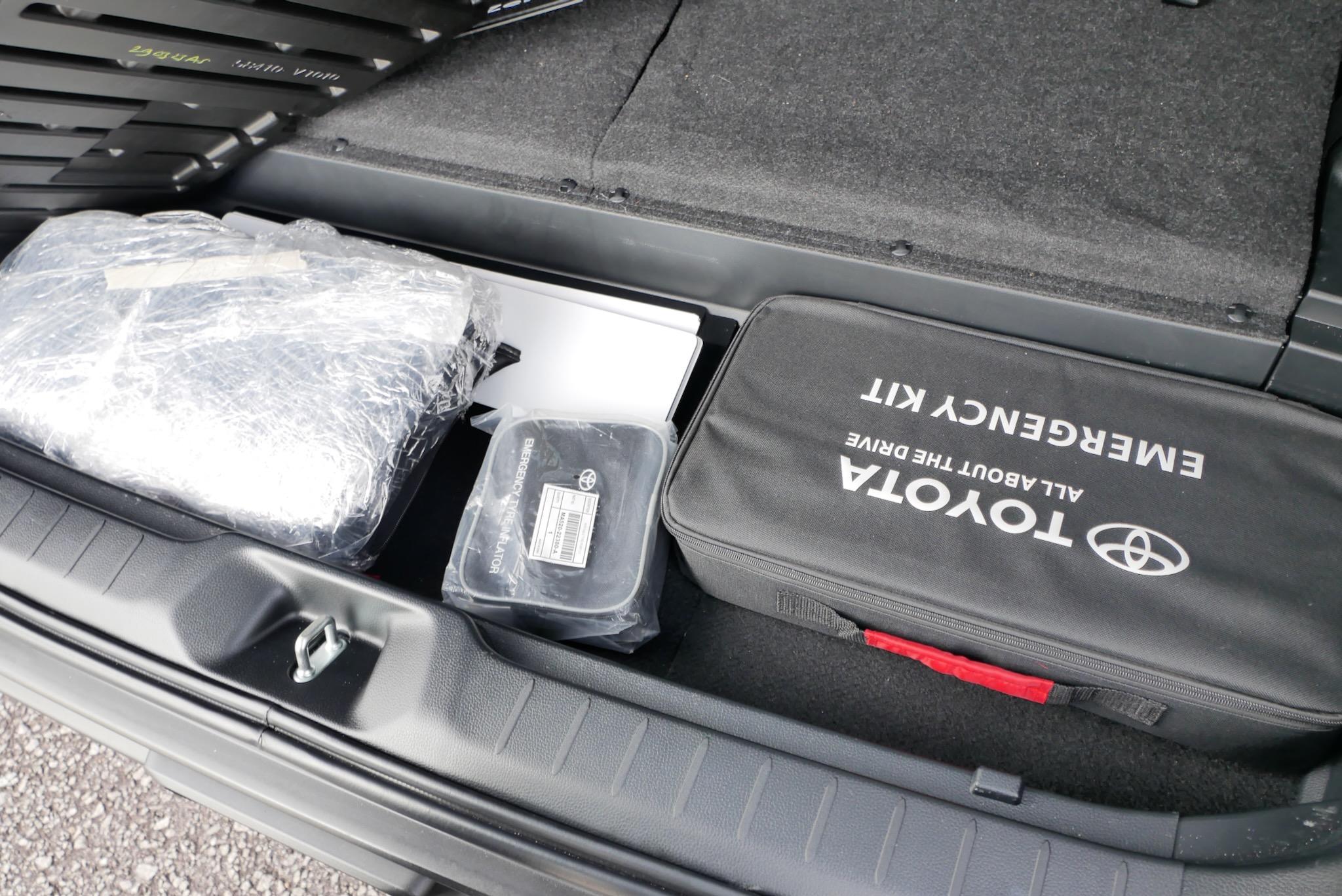The Innova Zenix Hybrid comes with a powered tailgate with memory function. The tailgate doesn’t extend quite that high though – it barely clears my head. We really like that UMW Toyota packages their cars with an Emergency Kit AND a tyre inflator kit AND a spare tyre without taking up any luggage space. You also get an integrated front and rear-facing dashcam.