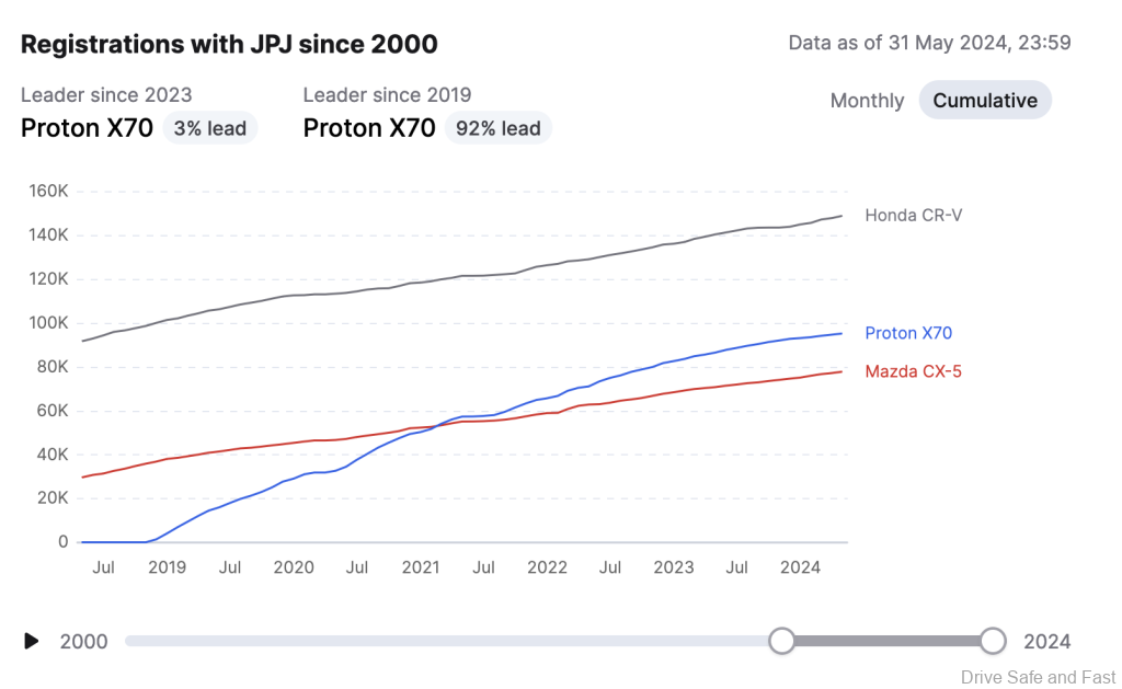 As you can see, the X70 has given the aging CX-5 some headache but it’s still finding new customers and hanging in there. Meanwhile, the Honda CR-V’s popularity is almost unaffected by Proton’s Chinese engineered SUV introduction.