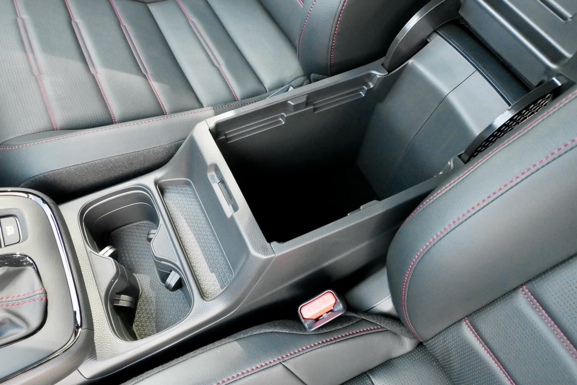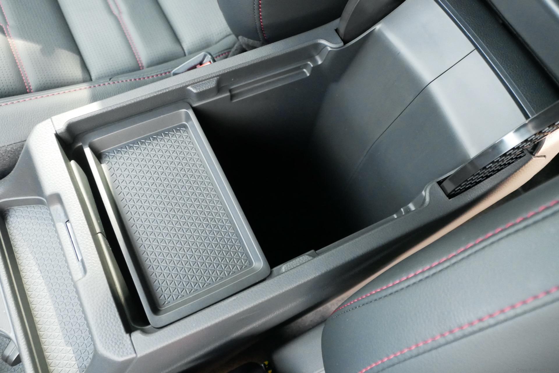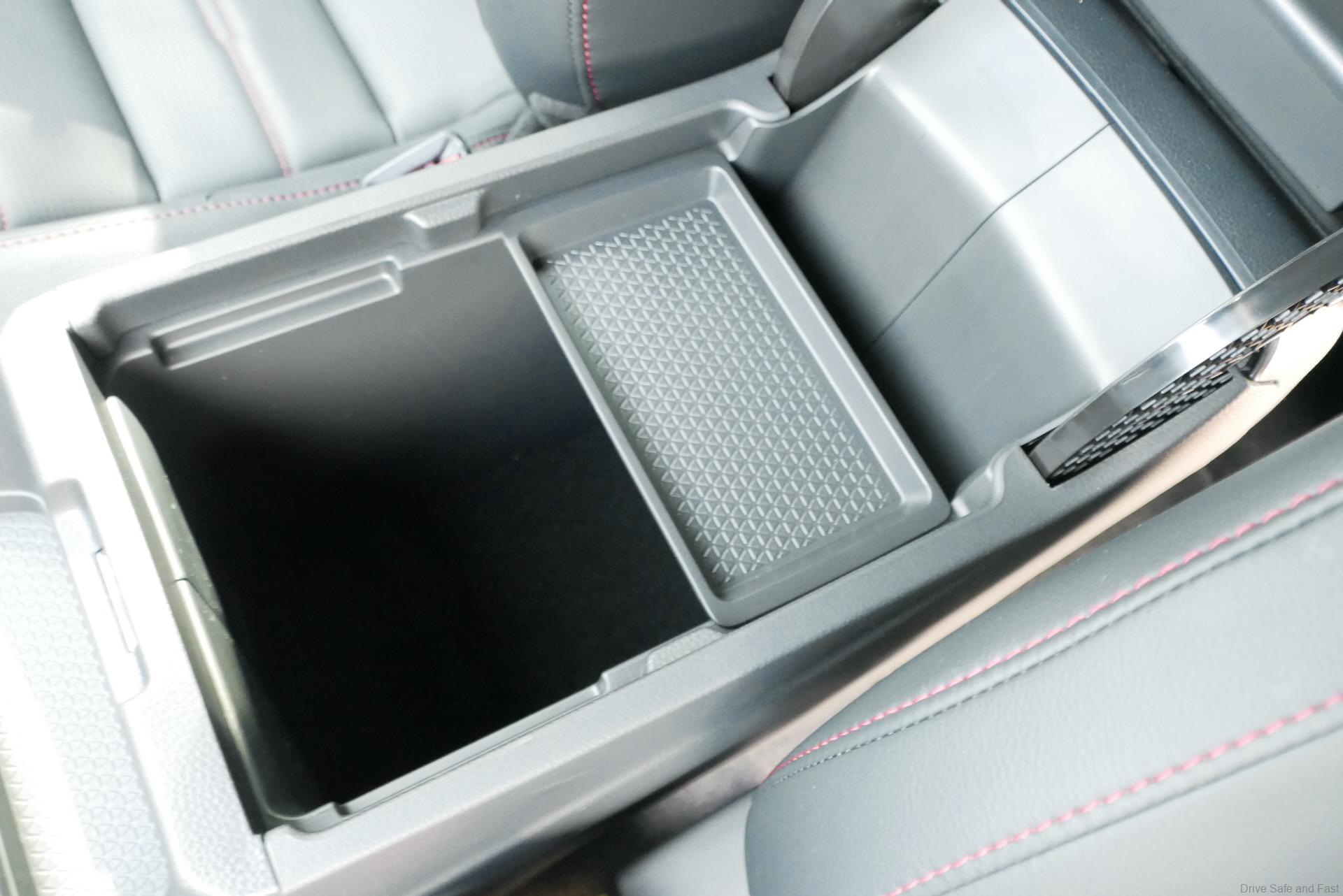 This one has a more modest area under the centre armrest for stowage. The upside is that items are always concealed here where the previous model could be configured in a way that left items visible. There’s evidence that Honda engineers paid some attention here too as there’s a little coin tray that can be positioned in 2 spots or tucked away under the compartment’s lid if not in use.