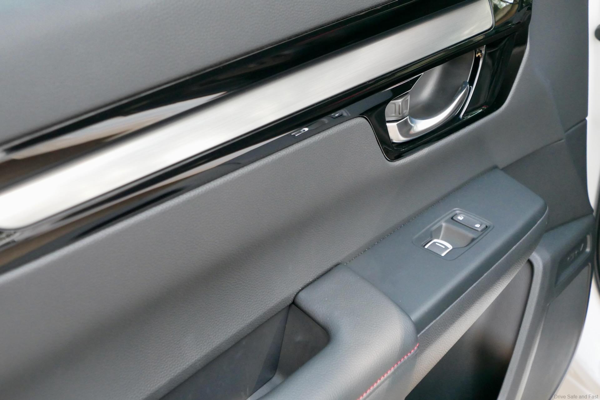 The dual zone climate control system features tactile physical buttons and knobs with digital readouts. The front passenger door card has its own global door lock control and there are easy-to-access physical controls for items like Hill Descent Control and Drive Mode selector. Even the volume knob features a nice dial. These touches show that Honda are more focused on the occupant’s experience of technology rather than by simply shoving as many cutting edge features as possible. Believe me, there are many cars out there that could benefit from rolling back some advancements a little.