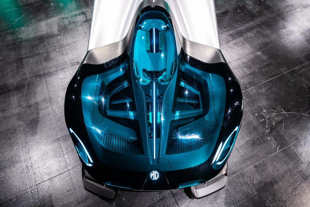 This time it’s just a showcase that reimagines what a land-speed record breaking electric MG might look like today. It has some key features of its predecessor, such as the centre spine, the compact single-seat cabin, and a lack of shut lines. The blue and white colours represent the open skies and salt flats of Bonneville, where the land speed record was set.