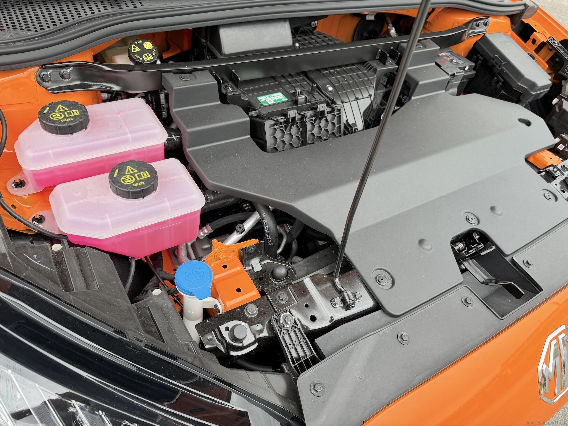 This MG4 uses a MacPherson front axle and a complex five-link single-wheel suspension for the rear axle.