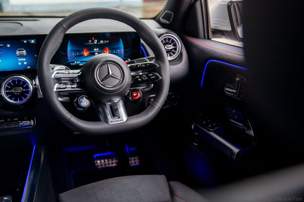 Acceleration from 0-100km/h takes just 5.5 seconds and the GLB 35 has a top speed of 250km/h.