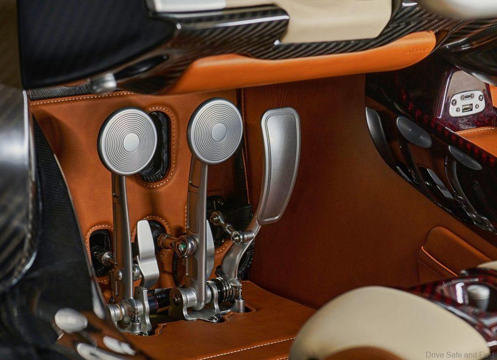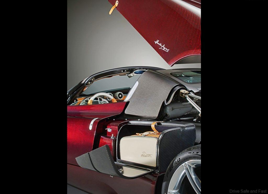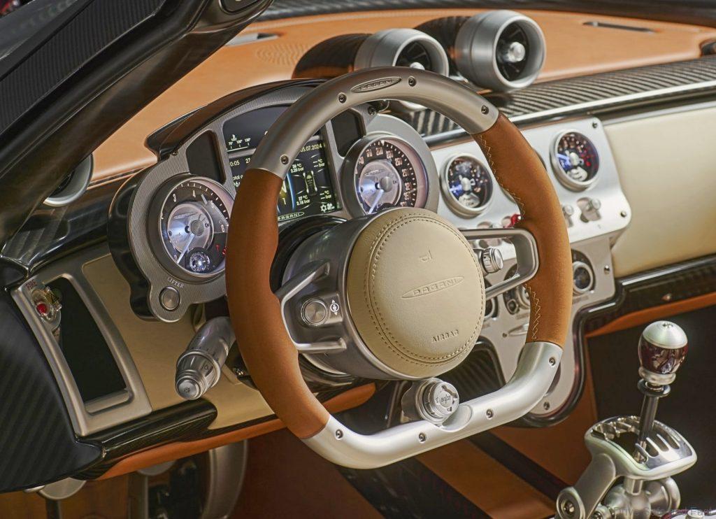 Being a Pagani, the Utopia Roadster has a lot of customisation options for the interior. Two special matching suitcases are supplied with every purchase with leather-covered carbon inner shells. These have special compartments next to the engine. They can be matched with the interior or customised for contrast against it.