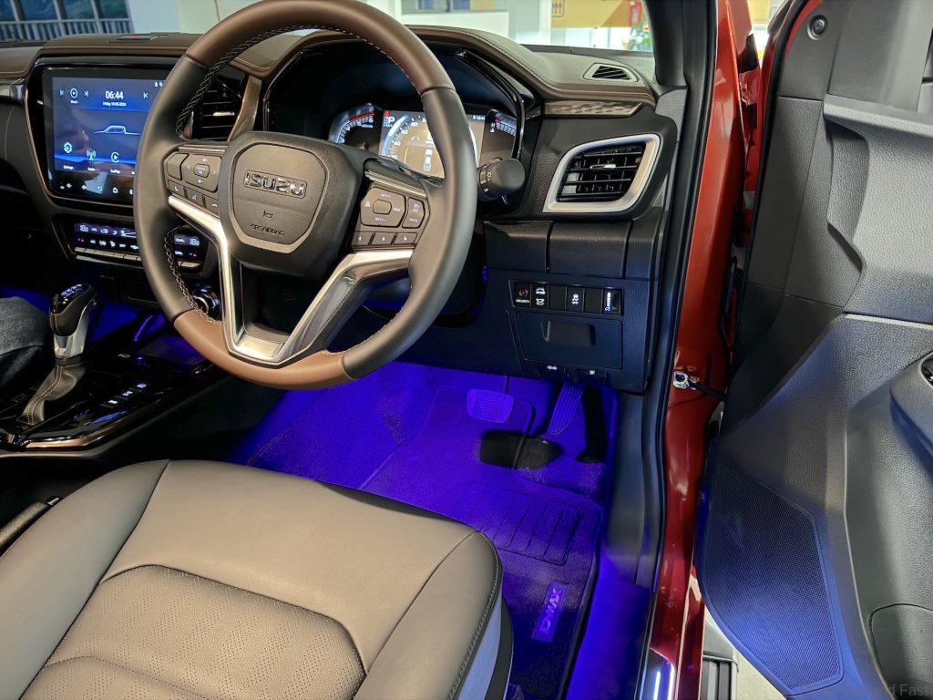 While the Isuzu D-Max X-Terrain is built tough on the outside, its interior tells a different story. The cabin is designed with comfort and luxury in mind, featuring high-quality materials with a new origami-inspired “Miura” design on the dashboard. Leather combination seats provide both style and support, while ambient lighting creates a pleasant atmosphere for all occupants.