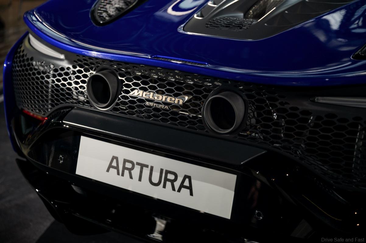 When shifting through its driving modes, the Artura Spider’s redesigned exhaust system generates a captivating crescendo of sound that envelops the driver. This enhancement, combined with significant upgrades over the original Artura, such as increased power and performance, ensures an even more immersive driving experience.