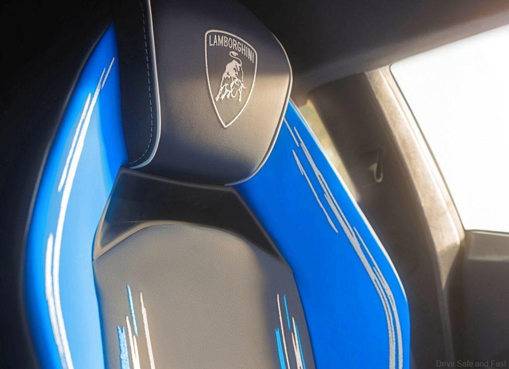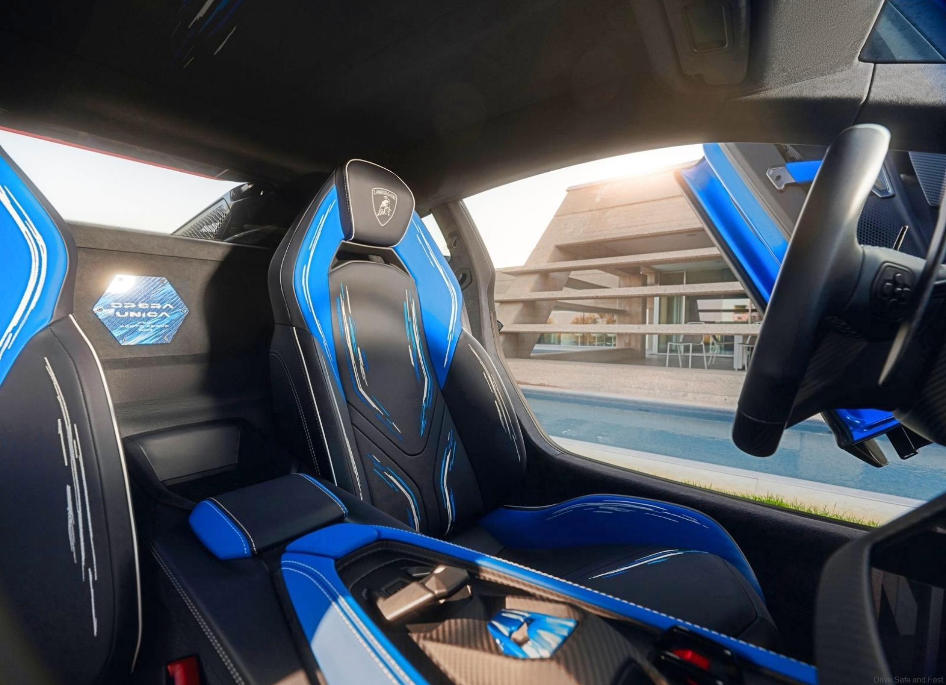 The Lamborghini Revuelto Opera Unica’s interior echoes the exterior’s aquatic theme: