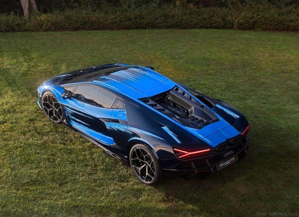 This exceptional Lamborghini Revuelto utilizes Lamborghini Ad Personam’s advanced paint techniques to accentuate the car’s architectural lines.