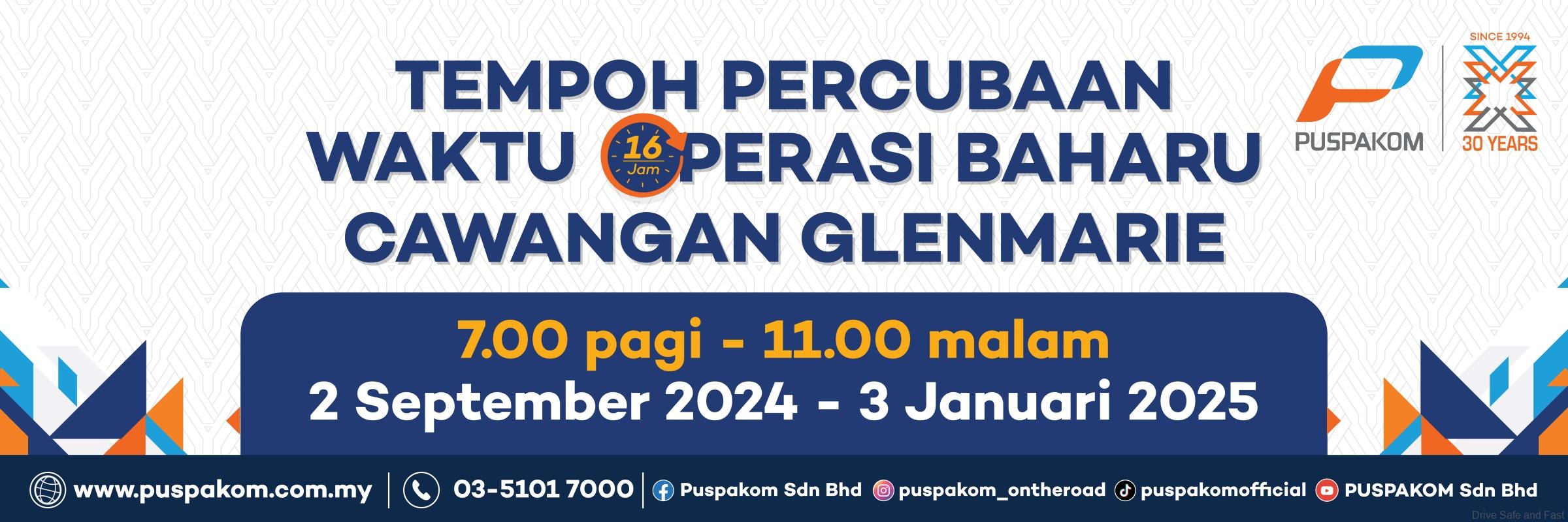 Puspakom has officially announced the launch of a trial period where it will be operating for 16 hours a day at its Glenmarie branch. This trial will begin on 2 September 2024 and run all the way through to 3 January 2025. This is a proactive step by Puspakom to accommodate the increasing demand for vehicle inspections and also one its strategic steps towards open market scope in the vehicle inspection industry in Malaysia.