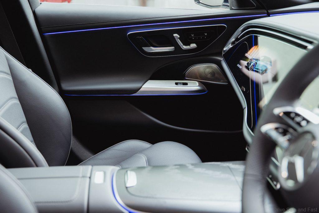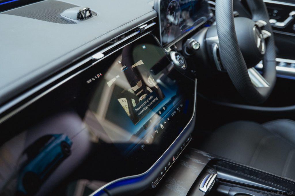 The highlight of the cabin is the MBUX Superscreen combines a 12.3″ front passenger display, a 12.3″ 3D driver’s display and a 14.4″ Central Display. Unlike the Hyperscreen, these panels do not use the more expensive OLED technology but the Superscreen has a party trick of its own – a selfie and video camera built into the dashboard. This enables occupants to carry out video calls while on the move. Another key feature is the sound system – the Burmester 4D surround sound system on the E350 e has a 15 channel 730W amplifier with a 21-speaker set up. This sophisticated setup features bass speakers, midrange speakers, tweeters, surround speakers, a centre-fill speaker, 3D speakers, ear-level speakers as well as a couple of exciters in the front headrests.