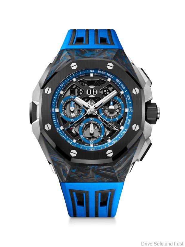 - Strap: Interchangeable blue and black rubber straps with titanium AP folding clasp