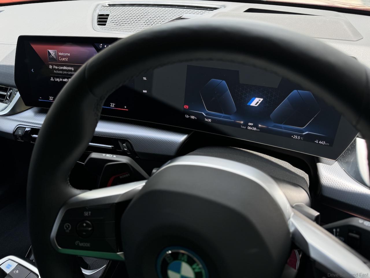 So, lets look closer at the iX2 we are test driving here. The BMW iX2 xDrive30 is an all-wheel drive electric “SAV” with a total system output of 313hp and 494Nm of torque from two electric motors. 0-100km/h takes just 5.6 seconds (which is the same acceleration time as the latest Mini Countryman EV) and it has an electronically limited top speed of 180km/h.
