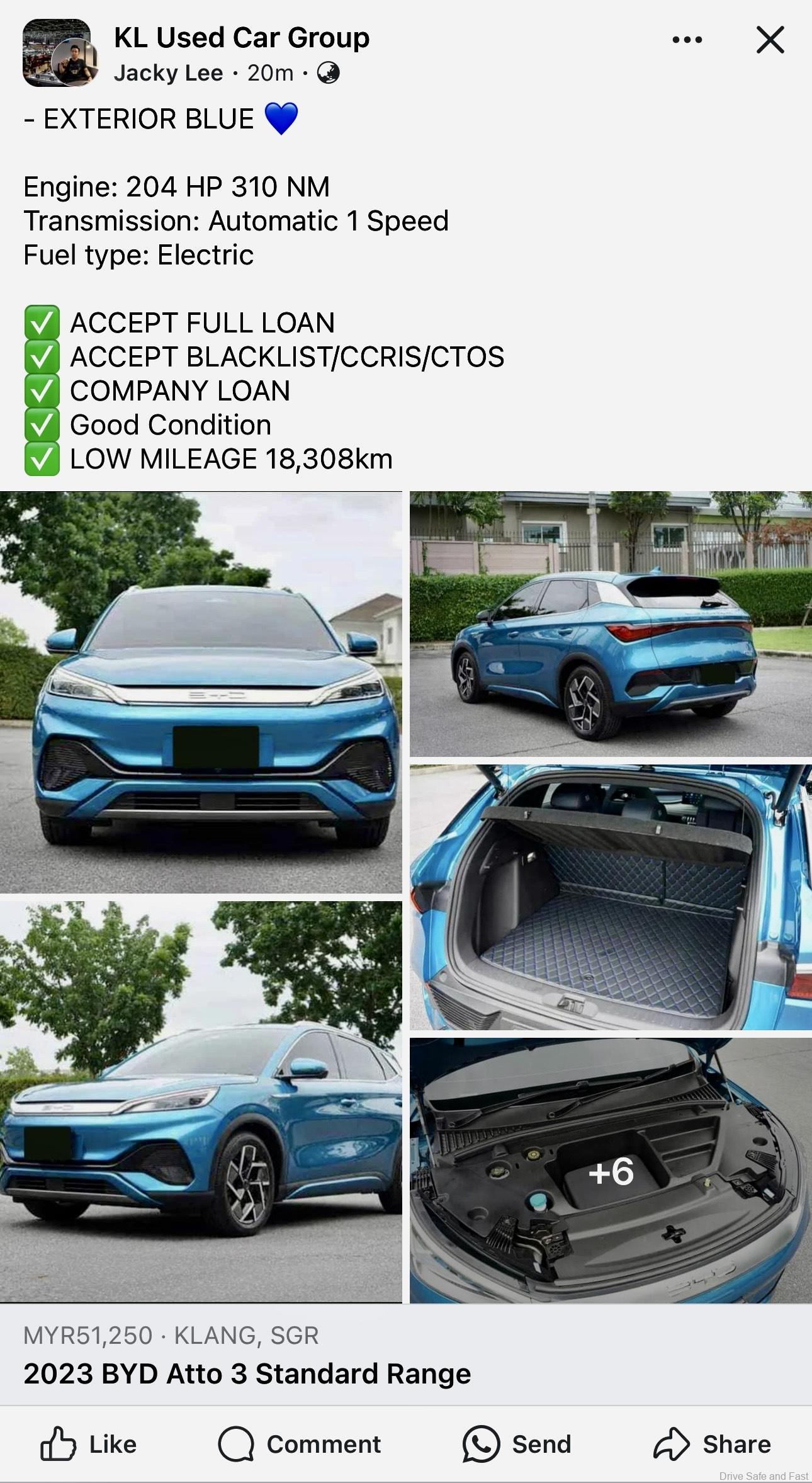 At its launch it was priced at RM149,000 (Standard Range). Which means just after 2 years, the owner of this unit is selling his Atto3 at just about 35 percent of its original selling price which does not make sense since most used Atto3’s are in the classifieds for double this very low asking price. (RM118k to RM128k). Could this be a flooded car or accident damaged?