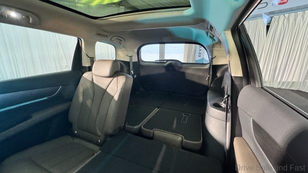 The interior is wrapped in brown faux leather as standard and you have 180L of boot space with all 7 seats in use. This expands to 580L with the last row folded down. Equipment includes a PM 2.5 air filter, an electronic parking brake with auto hold, a 360-degree parking camera, an NFC key card and start stop capability via smartphones or Apple Watch. The 12.8″ rotating screen features Apple CarPlay/Android Auto and has a 6-speaker set-up. An interesting built-in feature is the karaoke feature, which turns the car into a full-on karaoke box complete with optional USB-microphones and lyrics when the vehicle is stationary.