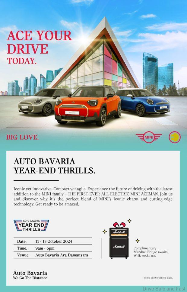 Auto Bavaria is set to make history with the showcase of the first-ever all-electric MINI Aceman during its Year-End Thrills event. From October 11-13, 2024, at Auto Bavaria Ara Damansara, car enthusiasts can experience the perfect blend of MINI’s iconic charm and cutting-edge electric technology, marking a new era in sustainable urban mobility.