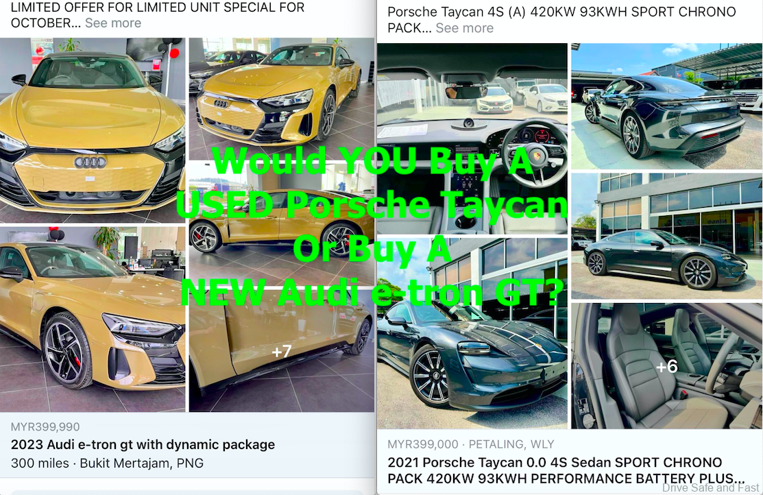 This means, AP (PEKEMA) holders who have imported in USED (without factory warranty and after sales) Porsche Taycans that are priced about RM399k or so will have a tough time trying to convince well informed Malaysian buyers to pay the same price for a used EV when a brand new Audi e-tron with full after sales and factory warranty is priced the same which is RM399k.