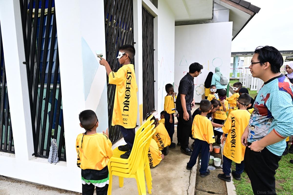 Additionally, the children collaborated with students from Pahang Foundation College to paint a vibrant mural using environmentally friendly paints. A total of 123 students, aged 7 to 17, participated in making this event a success.
