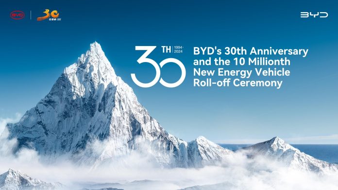 BYD marks 30 years with the 10 millionth NEV roll-off.