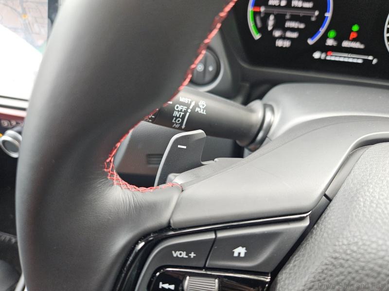 Interestingly, the Honda City Hatchback e:HEV RS does have paddle shifters on the steering wheel, however, this is not used to shift between gears while driving, but to adjust the intensity of the regenerative braking in the car which charges the electric battery when braking. Naturally, for non-hybrid owners this may be jarring at first so it is good to have.