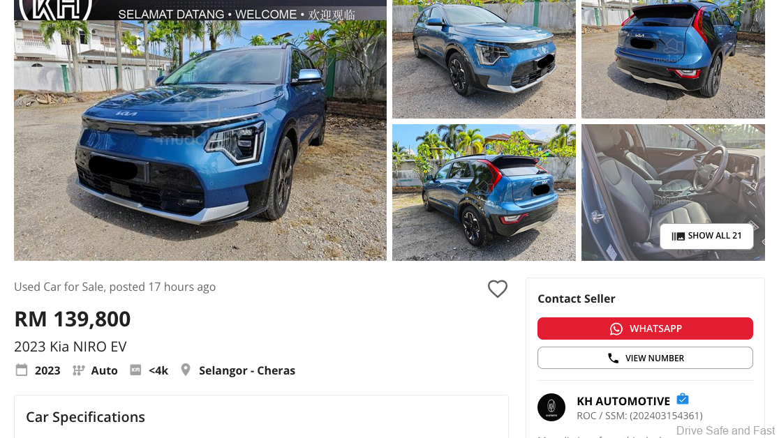 We found this relatively new example (1-year old, 3,000+km on the odometer) listed on mudah.my by KH Automotive – a used car dealer whose company has been verified by mudah.my. It’s listed on the seller’s page for just RM139,800. Bear in mind that this car was launched in Malaysia in July 2023 for around RM256K, meaning it has lost 45% of its value in just about a year… Given that its listed mileage is 3000+ kilometers, it’s safe to assume that this depreciation doesn’t even come from wear and tear either.