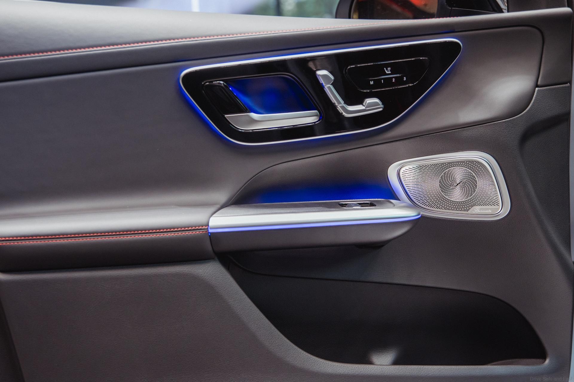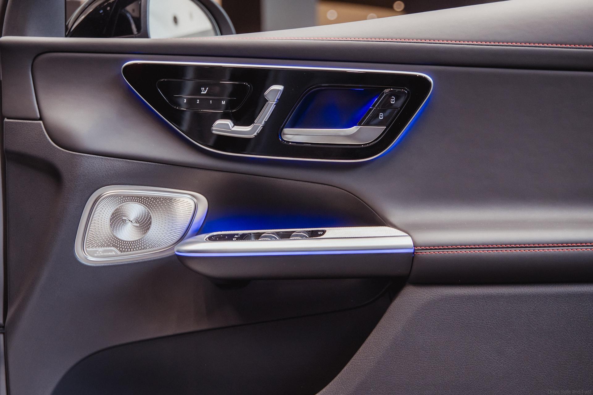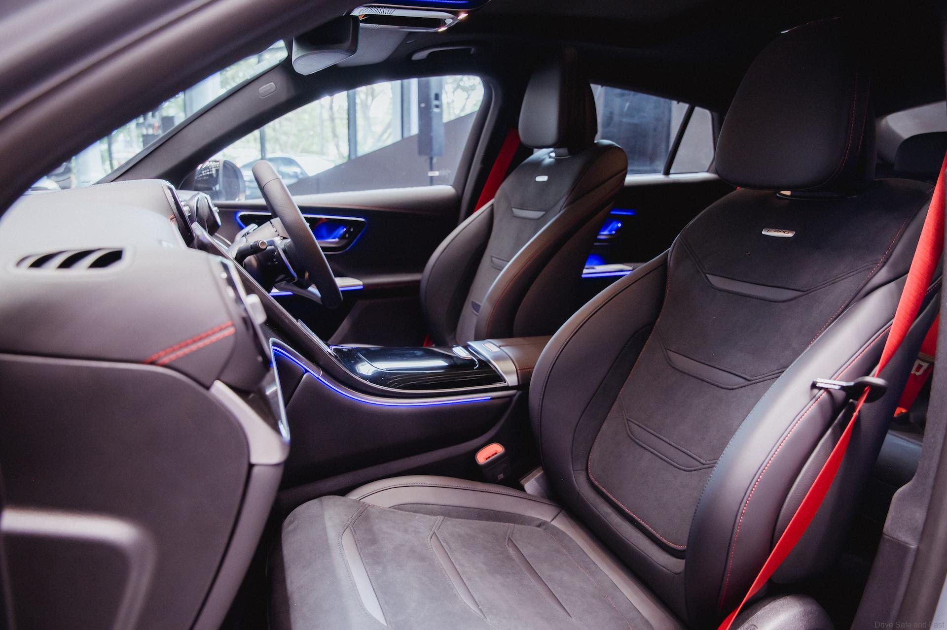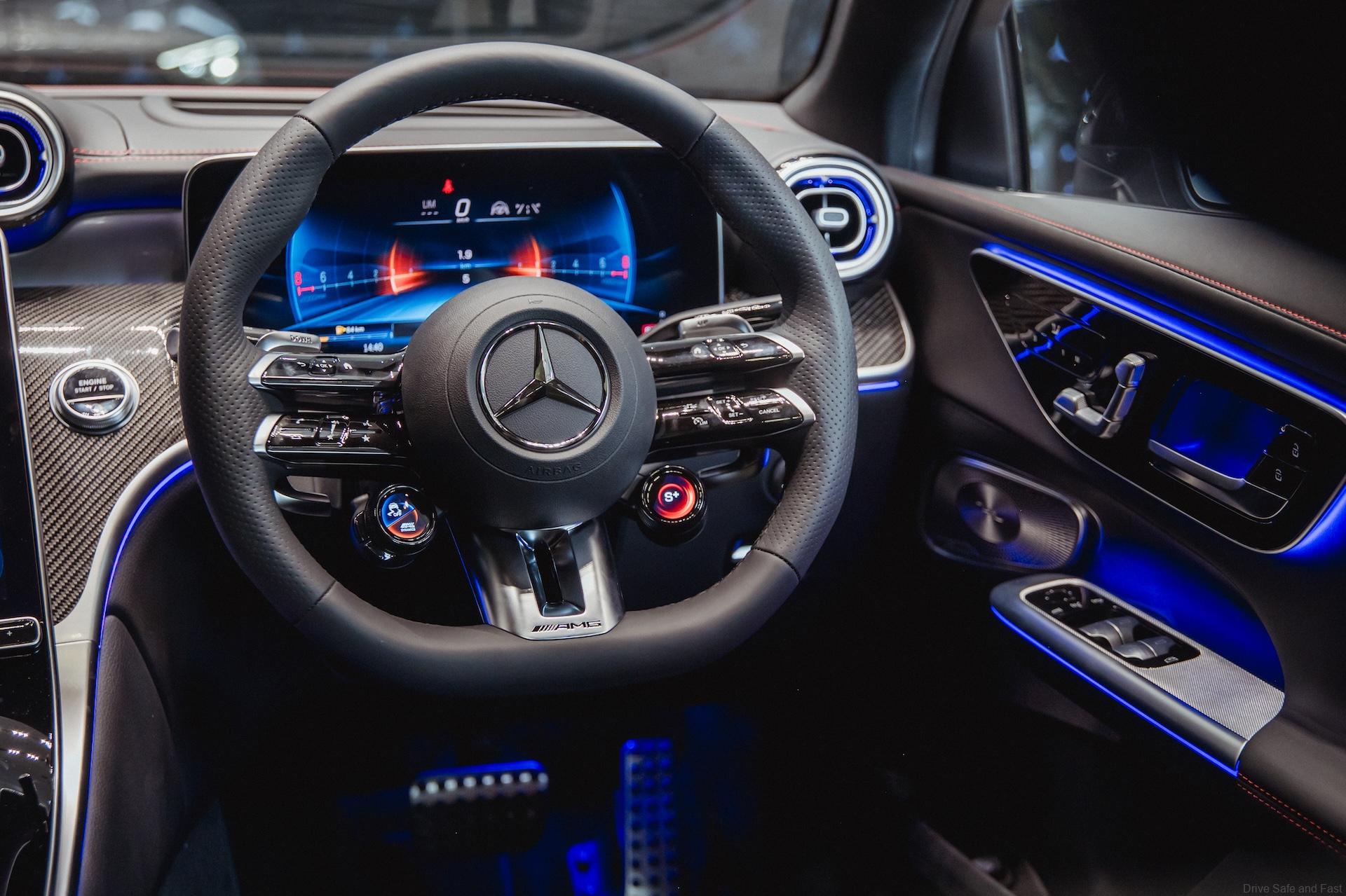Interior refinements in both models reflect Mercedes-Benz’s premium positioning. The GLC 350 e features ARTICO man-made leather upholstery with metal structure trim elements, while the AMG GLC 43 elevates the experience with AMG sport seats in ARTICO/MICROCUT microfiber upholstery and carbon-fiber trim elements. Both models come equipped with the Burmester® 3D surround sound system, providing an immersive audio experience.