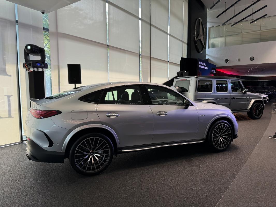 Powered by a 421hp 2.0-litre four-cylinder engine, the AMG GLC 43 Coupé accelerates to 100 km/h in 4.8 seconds. The vehicle features a sporty silhouette with AMG-specific design elements, 21-inch wheels, and the AMG Night Package. Inside, it offers performance-oriented AMG sport seats, carbon-fibre trim, and advanced tech like MBUX augmented reality navigation.