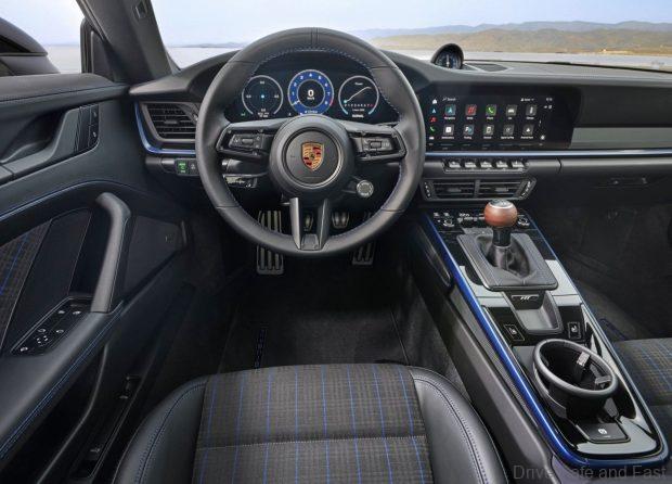 Inside, the Carrera T embraces a purposeful design with black four-way electrically adjustable sports seats featuring Sport-Tex centers and exclusive tartan fabric patterns. The manual transmission is topped with an open-pore walnut laminated wood gear knob, while an ‘MT’ badge adorns the area in front of the gear lever. Standard equipment includes a leather-wrapped heated GT sports steering wheel with a mode switch and the Sport Chrono Package with Track Precision App.