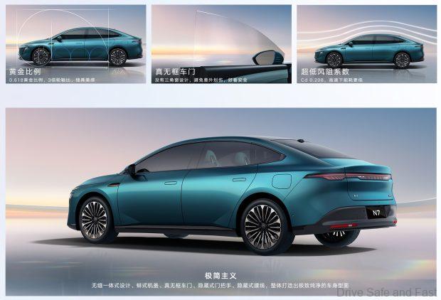 The ‘top hat’ of the vehicle looks to be completely unique as the Nissan N7 has a clamshell style hood and traditional swing out doors instead of the gull wing doors seen on the Dongfeng car. The Nissan also has a lightbar daytime running light across the front the vehicle and plenty of other design aspect that help to distinguish it from the Dongfeng eπ 007 sedan.