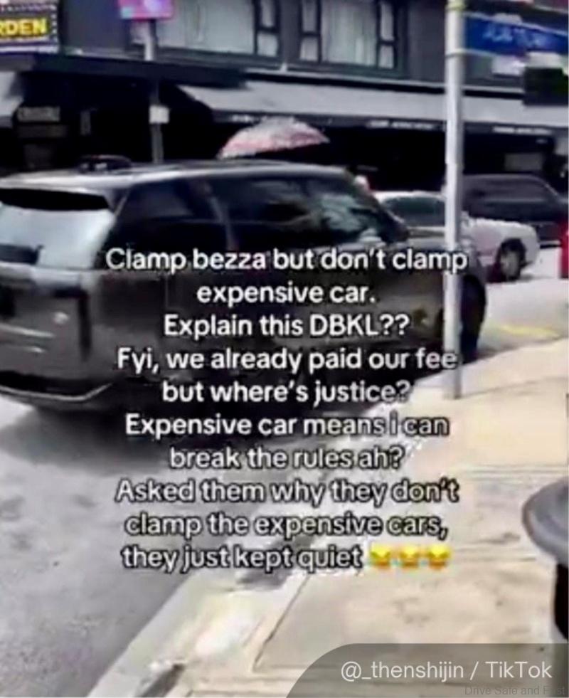 The controversy began when a TikTok video went viral, showing a man accusing DBKL of double standards in parking enforcement. In the video, the man claimed that his car had been clamped for illegal parking, while a more expensive Range Rover parked nearby had been left unclamped.