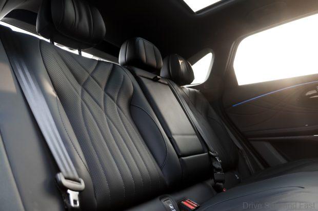 In terms of equipment, you get dual 12.3″ displays, wireless Apple CarPlay, a panoramic sunroof, a speaker in each of the front headrests, ventilated and heated seats, a 14-speaker Sony sound system, a 50W wireless charging pad with ventilation, and an NFC card.