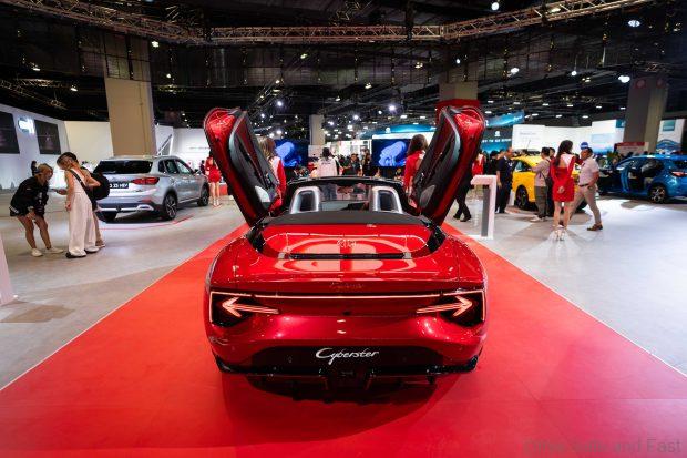 • Design Excellence: Boasting retractable scissor doors, 20-inch alloy wheels, and a low-profile silhouette, the Cyberster combines sporty aesthetics with cutting-edge engineering.