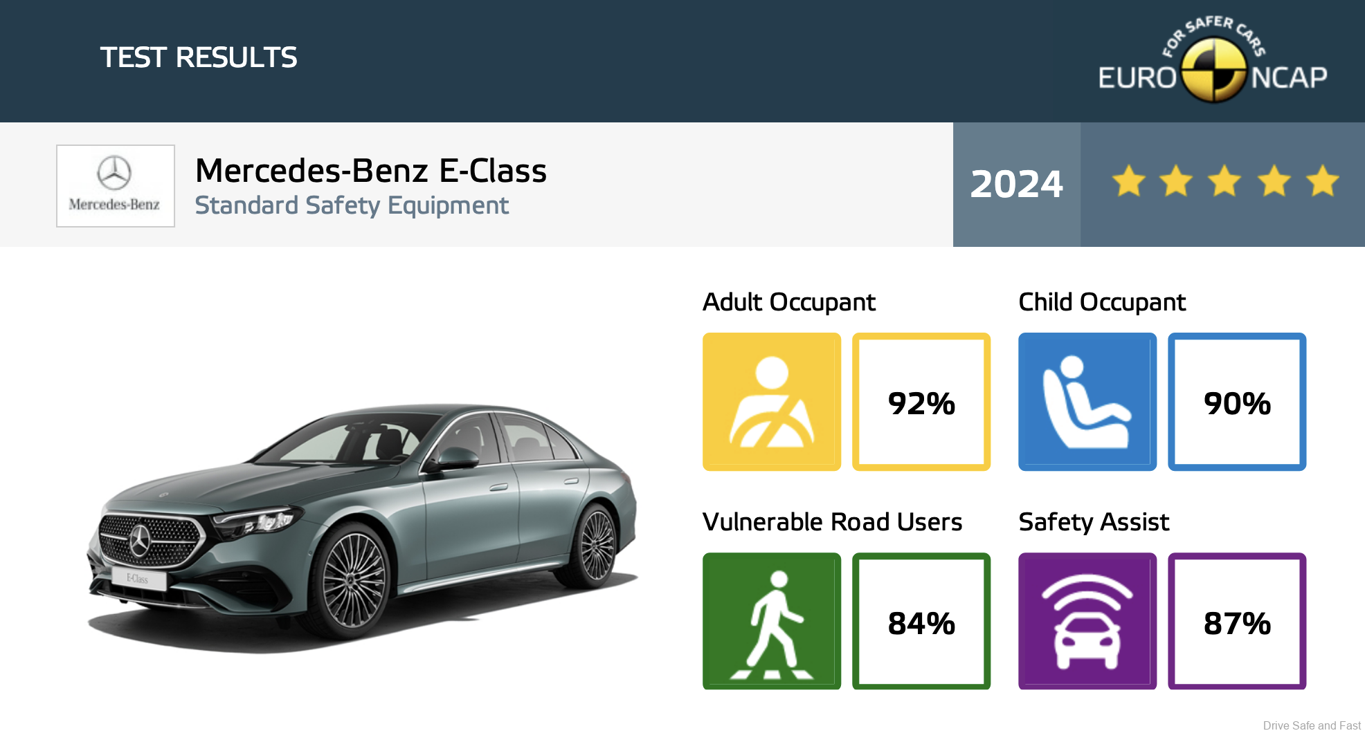The Mercedes-Benz E-Class claimed the top spot in terms of safety according to Euro NCAP.