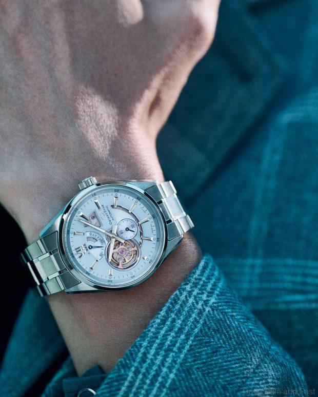 The Contemporary Collection M34, named after the Perseus star cluster, introduces two limited edition models inspired by the aurora at dawn. The M34 F7 Mechanical Moon Phase and M34 F7 Semi Skeleton, each limited to 200 pieces, feature mother-of-pearl dials with distinctive grey gradation that captures the ethereal beauty of aurora borealis in the morning sky. These timepieces demonstrate Orient Star’s mastery of finishing techniques, combining sharp case designs with both hairline and mirror Sallaz polishing.