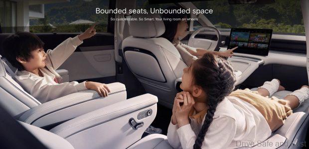 The Xpeng X9 is huge at 5,293mm long and 1,988mm wide. It has enough space for seven seats arranged in three rows with the middle row getting individual zero-gravity seats with ventilation and ten-point massage functionality. The MPV features 21.4″ rear displays and a 23-speaker Xopera Audio system plus ‘windless’ central air conditioning