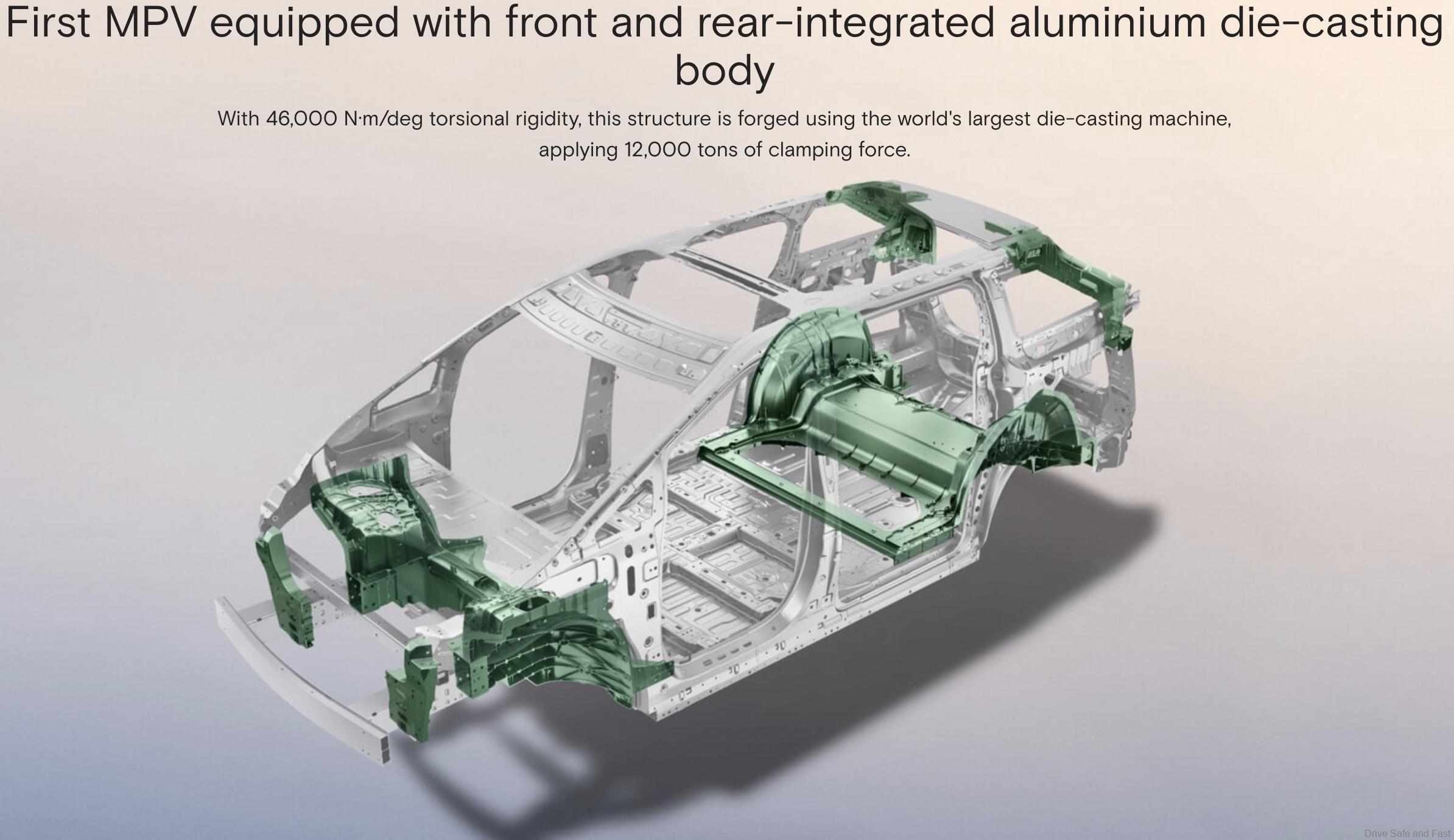 The Xpeng X9 is huge at 5,293mm long and 1,988mm wide. It has enough space for seven seats arranged in three rows with the middle row getting individual zero-gravity seats with ventilation and ten-point massage functionality. The MPV features 21.4″ rear displays and a 23-speaker Xopera Audio system plus ‘windless’ central air conditioning