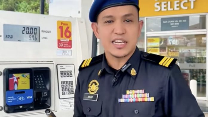 Part two of the video, uploaded on 4 February, shows the officer and colleagues testing the tampered pump. They filled a measuring can labeled for 10 liters of petrol, but the actual volume was less than expected. This evidence is used to show that the petrol station has violated regulations under the Weighing and Measuring Act 1972.