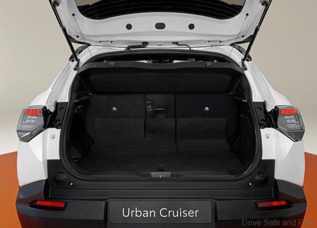 The Urban Cruiser features a distinctive “hammerhead” frontal design complemented by slim headlight units that align with Toyota’s new generation design language. Its rear profile is equally impressive, with muscular wings and a wrap-around rear light bar that emphasize the vehicle’s strength and stability.